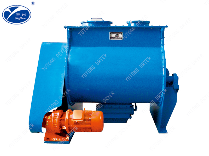 本系列混合機(jī)以強(qiáng)烈、高效混合為特點(diǎn)、臥式筒體內(nèi)兩根攪拌等速反向旋轉(zhuǎn),上特殊布置的槳葉確保物料徑向、環(huán)向、軸向三向運(yùn)動(dòng),形成復(fù)合循環(huán),在極短的時(shí)間內(nèi)達(dá)到均勻混合。