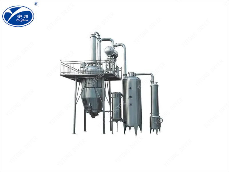 二次蒸汽繼續(xù)上升,經(jīng)冷凝器冷凝成熱冷凝液,回落到提取罐內(nèi)作新溶劑加到藥面上,新溶劑由上而下通過藥材層到提取罐底部,藥材中的可溶性有效成分溶解于溶劑內(nèi)。提取液經(jīng)抽濾管抽入濃縮器、濃縮產(chǎn)生的二次蒸汽又送到提取罐作熱源和新溶劑,這樣形成的新溶劑大回流循環(huán)提取,故藥材中溶質(zhì)密度與溶劑中含溶質(zhì)密度保持高梯度,藥材中的溶質(zhì)高速溶出,提取完畢,提取液完全被抽入濃縮器,濃縮的二次蒸汽轉(zhuǎn)送冷卻器,濃縮繼續(xù)進(jìn)行,直至濃縮至需要比重(1.2~1.34)的藥膏,放出備用。提取罐內(nèi)殘液,可放入貯罐作下批復(fù)用,藥渣從出渣門排掉,若是用有機(jī)溶劑提取,則先加適量的水,開直通和夾套蒸汽,回收溶劑后,將渣排掉。