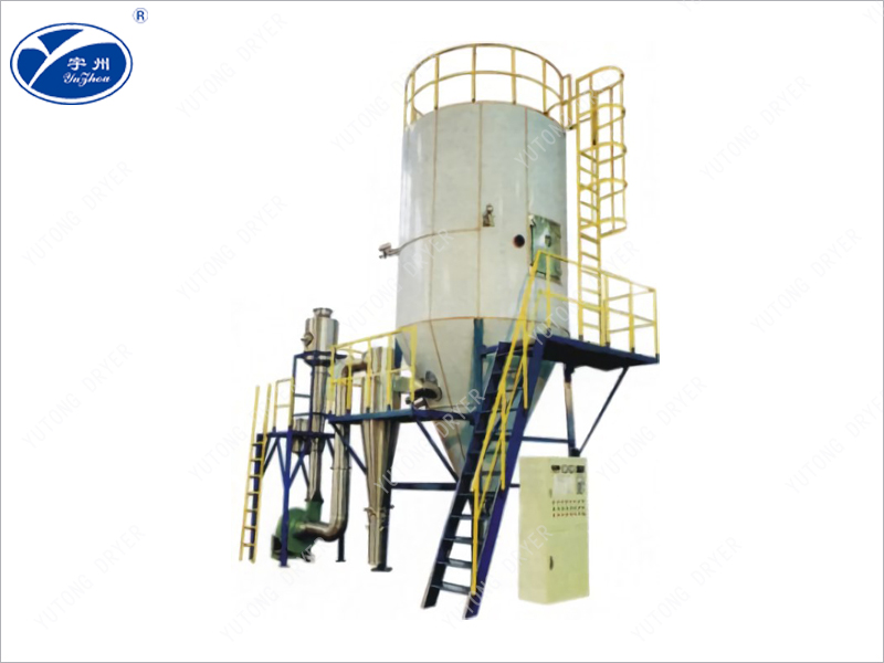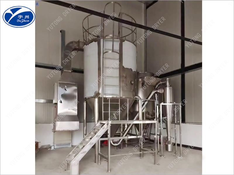 潔凈空氣加熱后進入干燥塔,在塔內(nèi)熱風中用二流體(或三流體)噴嘴將各種料液物化成微小液滴,與熱風進行快速熱交換,蒸發(fā)掉液料中的水份(或溶劑),并隨熱風排出,得到粉狀產(chǎn)品。